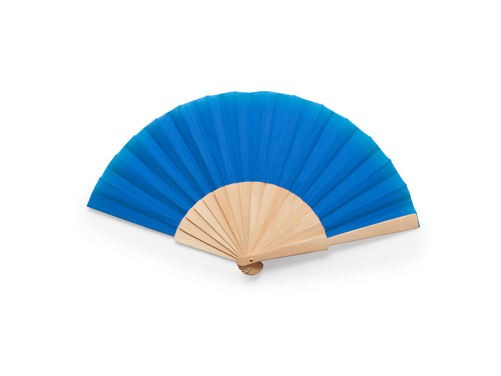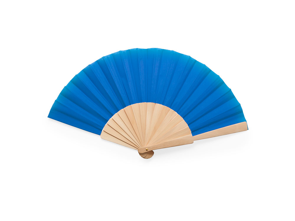 Веер CALESA с деревянными вставками и тканью из полиэстера, голубой купить оптом и в розницу с нанесением логотипа в Нижнем Новгороде