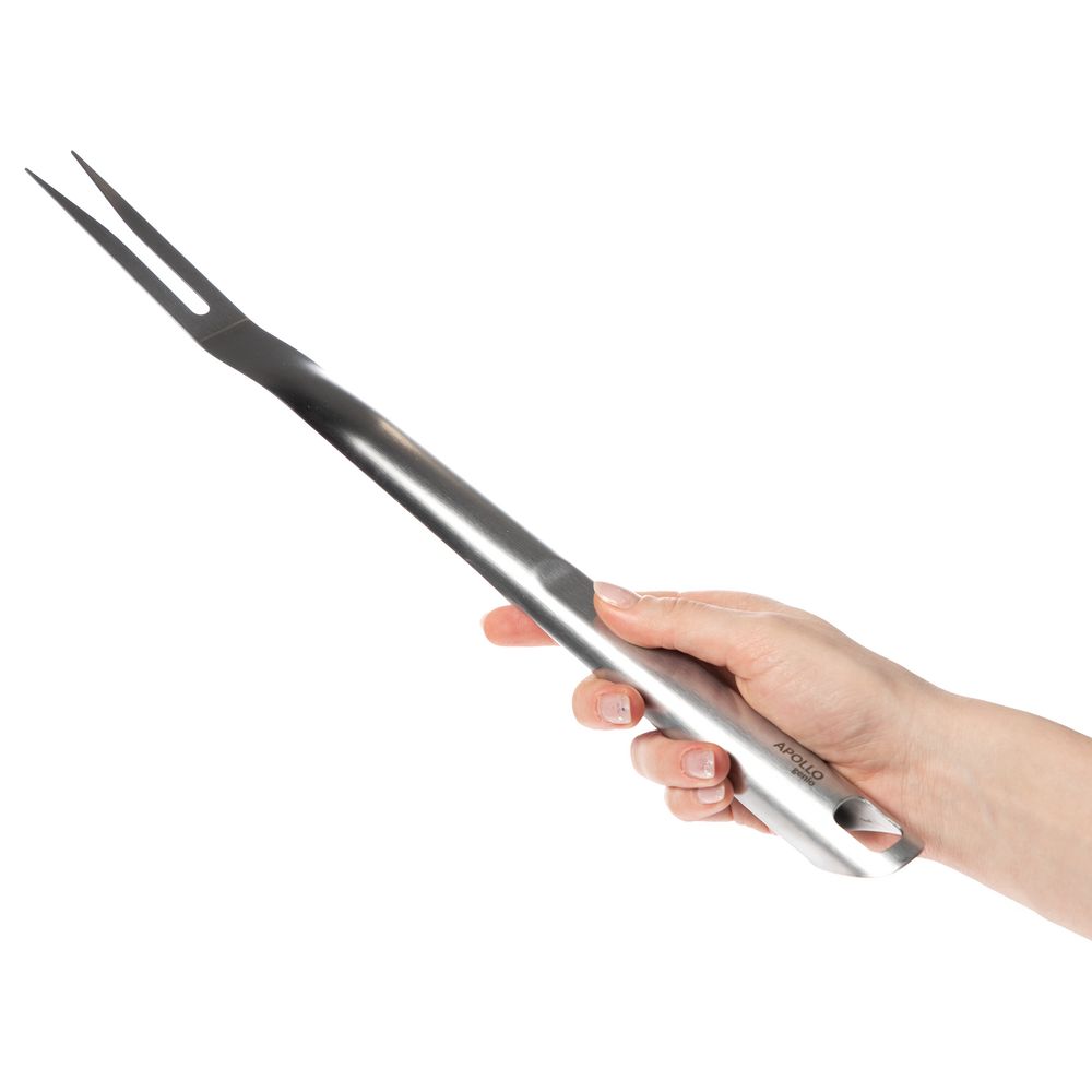 Вилка Grillo предназначена для переворачивания продуктов на гриле, мангале или жаровне, а еще с ее помощью удобно проверять степень готовности. Вилка имеет оптимальную длину для безопасного использования и отверстие, позволяющие удобно подвесить прибор на крючок.