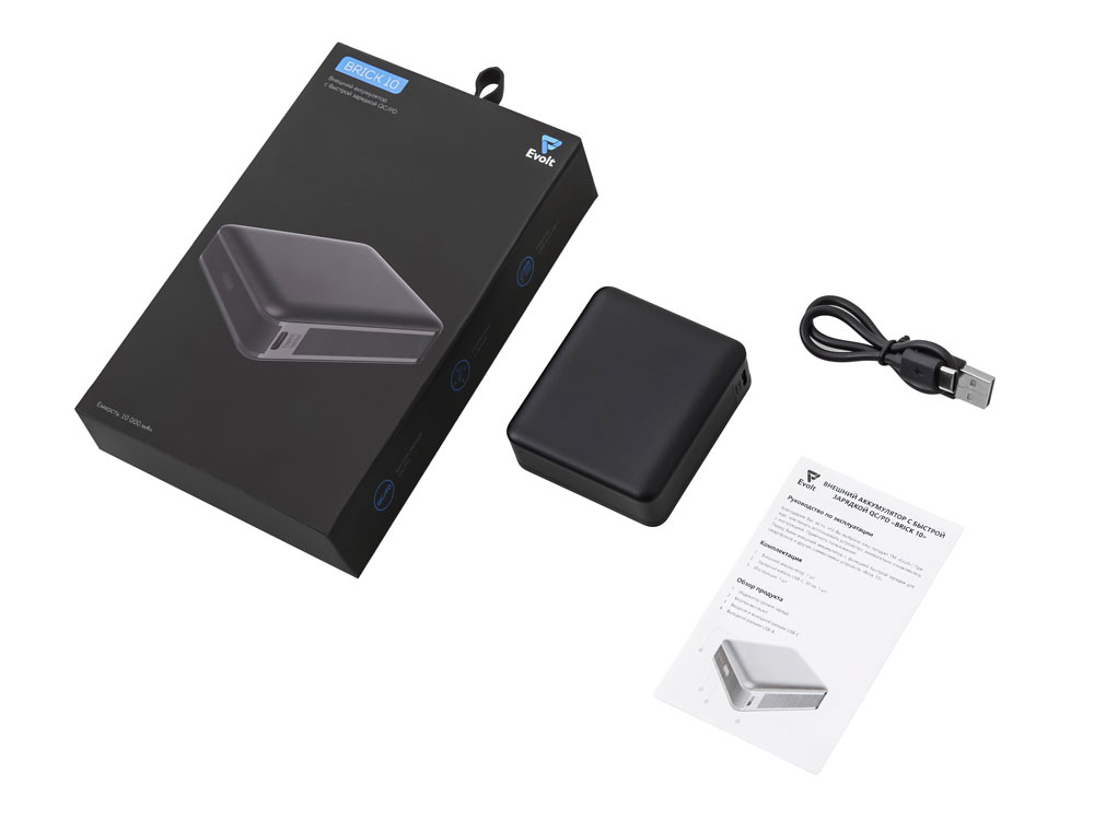 Внешний аккумулятор Brick 10 с быстрой зарядкой QC/PD, 10000 мАч, черный