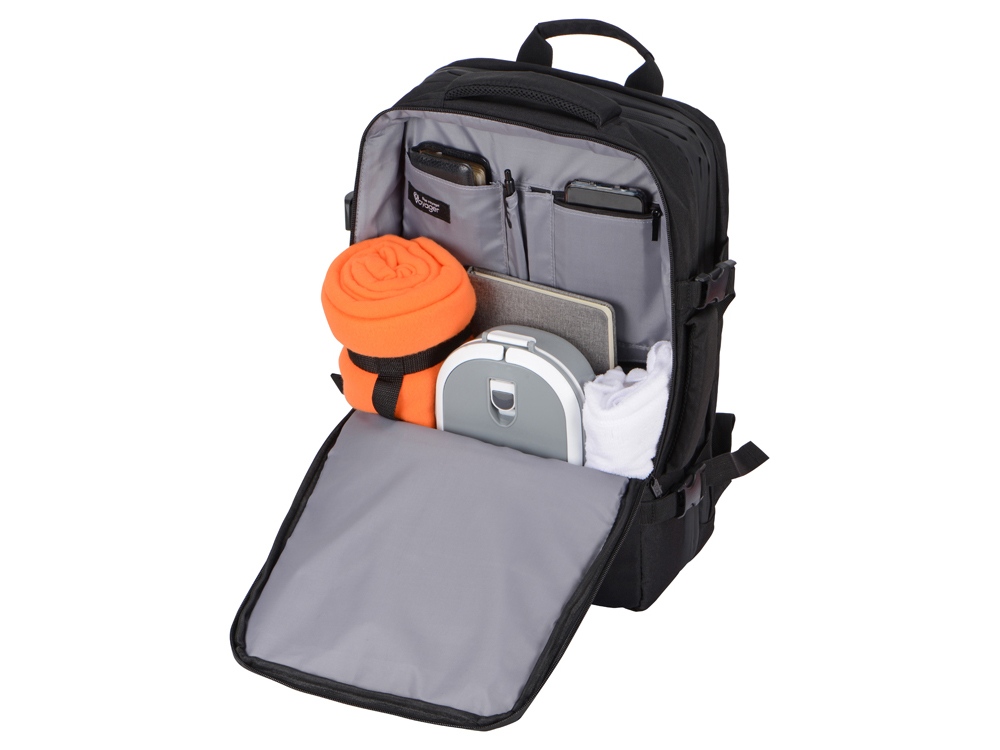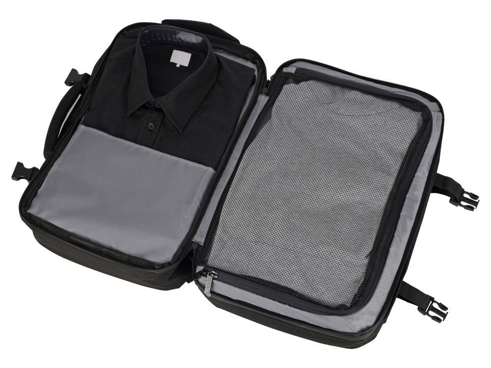 Идеальное решение для деловых поездок и путешествий в любую погоду - поместится все необходимое - от планшета и ноутбука до личных вещей и одежды. С рюкзаком можно ездить в любую погоду, потому что он изготовлен из водостойкого материала и снабжен водонепроницаемыми молниями. С помощью 4-х боковых фиксаторов вместительный рюкзак трансформируется в компактную сумку. Три вместительных отделения, включая: - Органайзер с 3-мя отделениями. - Отделение для одежды с сетчатой крышкой на молнии. - Отделение для планшета и ноутбука 15. Дополнительные характеристики: - 3 кармана на молниях снаружи на фронтальной стороне. - Внешний USB порт для зарядки устройств. - Ремень на спинке для надежного крепления на ручку чемодана. - Эргономичные лямки с регулировкой длины и фиксатором на груди. - Эргономичная спинка из EVA снижает нагрузку на спину. - Вместимость 35 л, максимальная нагрузка 20 кг. - Нетканый мешок для хранения в комплекте.