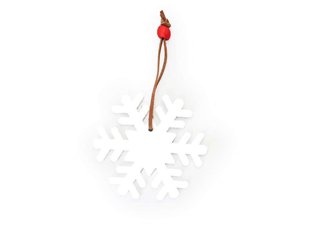 Новогоднее украшение из фетра доступно в трех вариантах: снежинка, елка и олень. Все дизайны представлены с коричневым ремешком с красной бусиной.