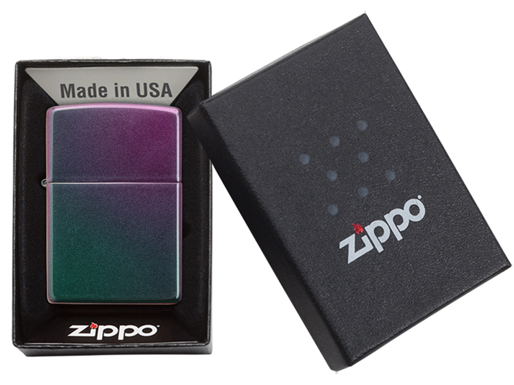 Zippo продолжает радовать непревзойденным выбором цветов всей радужной палитры, и это касается, в том числе, новой модели Iridescent. Невозможно оторвать взгляд от бирюзово-фиолетовой атласной отделки с плавными переходами от светлого к темному, получая истинное наслаждение от переливающихся под разными углами цветов. Пополните свою коллекцию ветроустойчивых зажигалок новой блистающей моделью. Поставляется в подарочной коробке. Для оптимальной работы рекомендуется использовать только оригинальное топливо Zippo. • Настоящая ветроустойчивая зажигалка Zippo с характерным фирменным щелчком • Полностью металлическая конструкция и абсолютная ветроустойчивость • Возможность заправки позволяет пользоваться зажигалкой всю жизнь; для оптимальной работы рекомендуется использовать оригинальные кремни, фитили и высококачественное топливо Zippo • Сделано в США; пожизненная гарантия Она работает или мы починим её бесплатно™ • Топливо: высококачественное топливо Zippo (продаётся отдельно)
