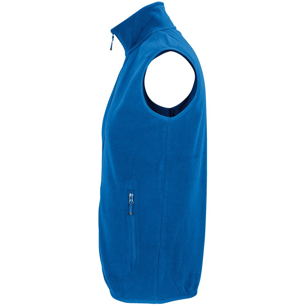 Флисовый жилет унисекс с воротником-стойкой. Застежка-молния в тон, боковые карманы на молнии. Укрепляющая тесьма по вороту. Отделка эластичной лентой по низу и проймам.