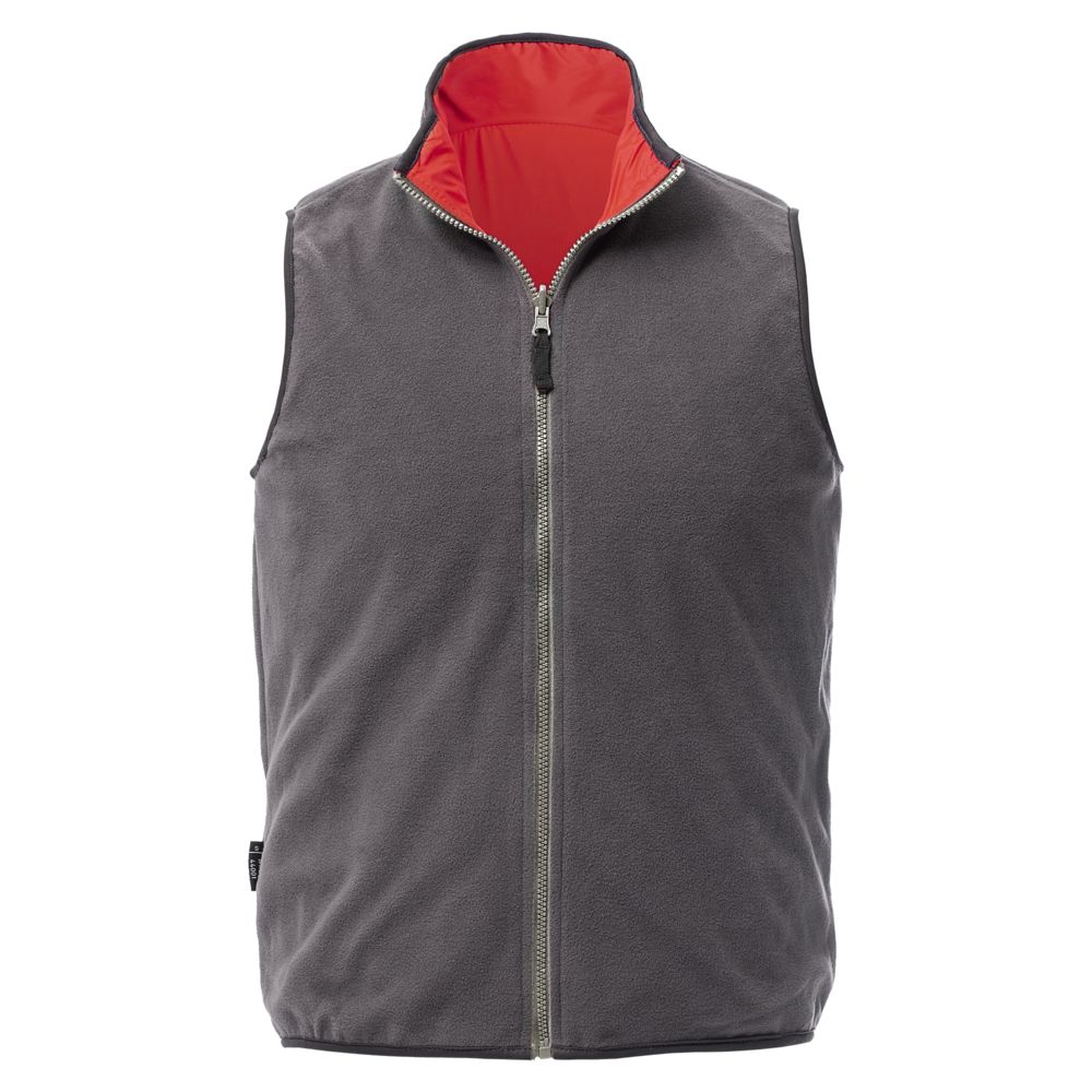 Сверху нейлон с водостойкой пропиткой, внутри - флис. А можно и наоборот. Жилет ведь двусторонний. Для удобства нанесения логотипа можно частично отстегнуть подкладку.