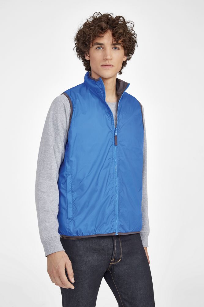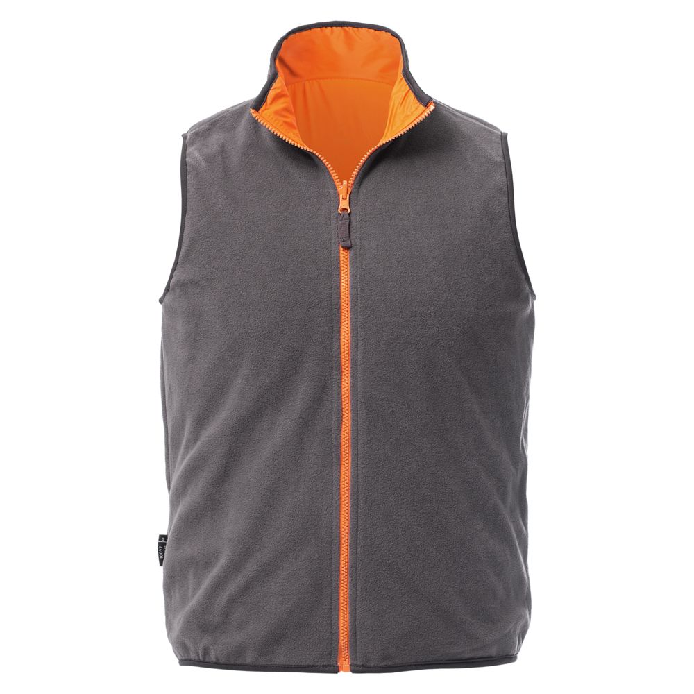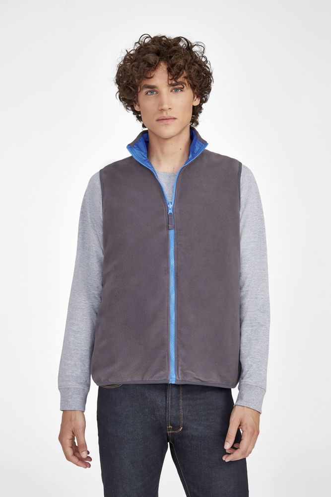 Сверху нейлон с водостойкой пропиткой, внутри - флис. А можно и наоборот. Жилет ведь двусторонний. Для удобства нанесения логотипа можно частично отстегнуть подкладку.
