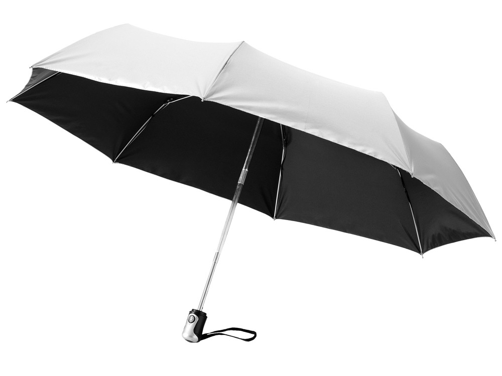 Зонт Alex трехсекционный автоматический 21,5, серебристый/черный купить оптом и в розницу с нанесением логотипа в Нижнем Новгороде